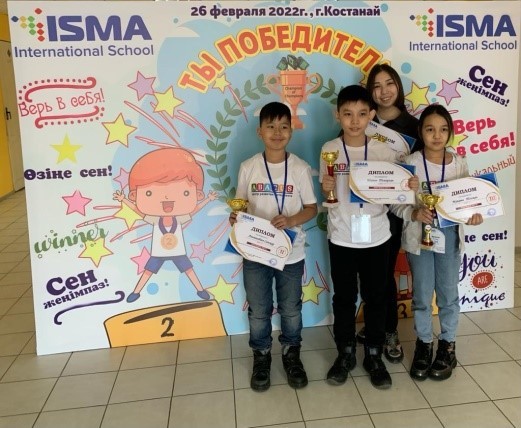 2022 жылдың 26 ақпанында әртүрлі жас санатындағы оқушылар үшін ментальді арифметика бойынша қалалық олимпиада өтті. Біздің мектептің 4 оқушысы жүлделі орындарға ие болды: 1 орын - Шериев Темирлан 2 орын– Альшимбаев Санжар 2 орын- Құлмухамбет Арман 3 орын – Мукаева Тогжан